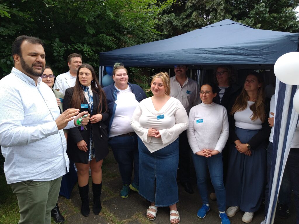 Gekommen waren nicht nur die Mitarbeitenden des Hauses gekommen, sondern auch Mitarbeitende verschiedener Jugendämter, um sich ein Bild des Wohnangebotes zu verschaffen, sowie zahlreiche Anwohnerinnen und Anwohner aus der Nachbarschaft, Mitglieder des Ortsamtes und die Kontaktbeamten der Polizei – um die ersten Jugendlichen, die bereits eingezogen sind, willkommen zu heißen, Hemmungen abzubauen und auf die neue Nachbarschaft anzustoßen.